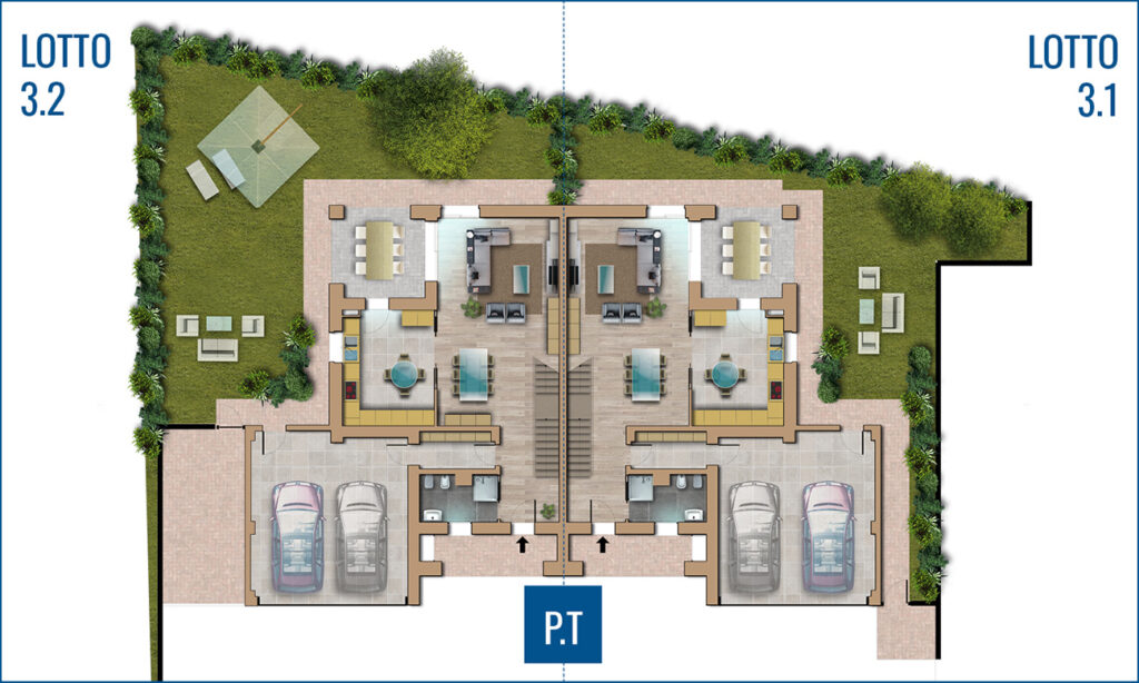 ingresso indipendente e AMPIO giardino esclusivo di grande dimensione con vista verso la collina.