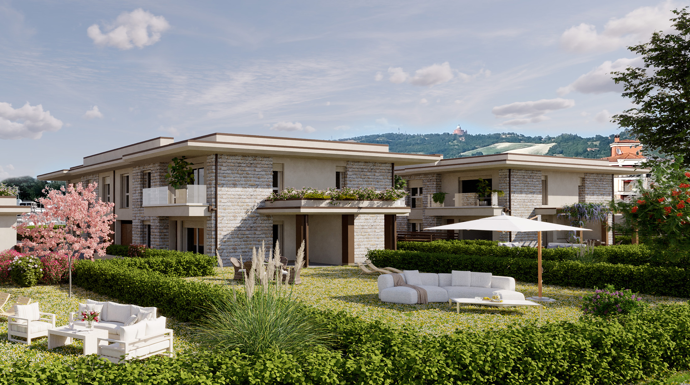 ingresso indipendente e giardino esclusivo con vista verso la collina.